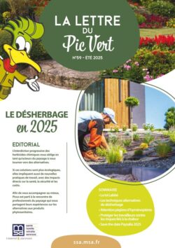 La lettre d’information du Pic Vert, à destination des entreprises du secteur « Jardins Espaces Verts », est rédigée par les caisses de MSA Alpes du Nord, Ardèche-Drôme-Loire, Auvergne et Ain-Rhône. Elle est semestrielle et présente une nouvelle thématique à chaque publication.